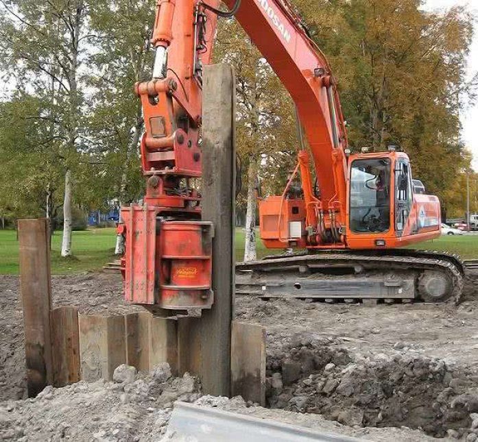 Извлечение шпунтовых ограждений при строительстве спортивного комплекса.